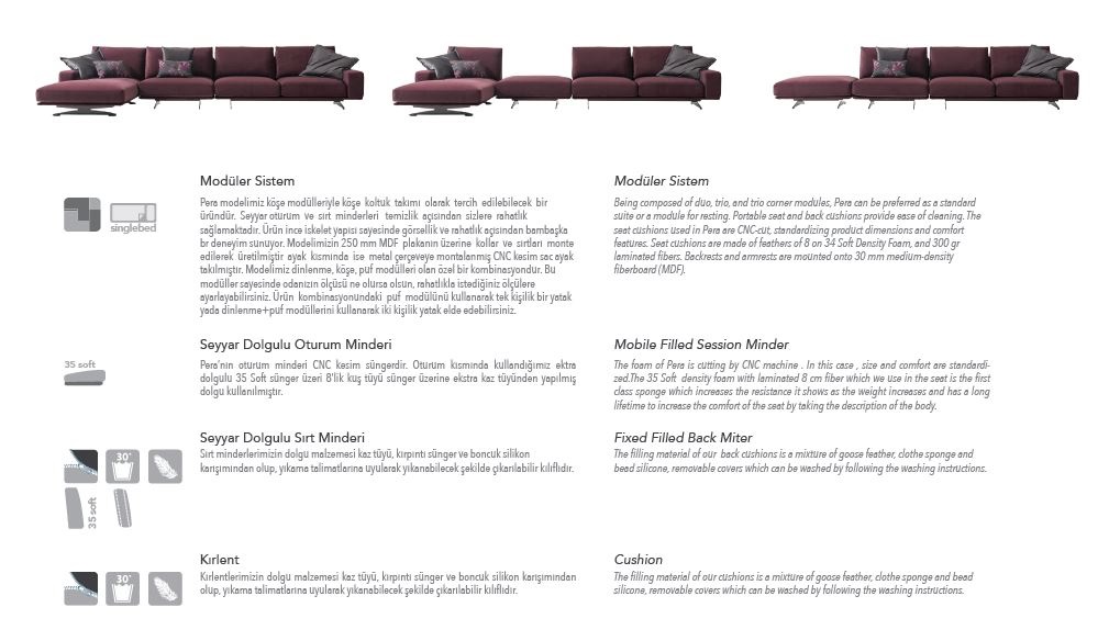 - Pera modelimiz köşe modülleriyle köşe koltuk takımı olarak tercih edilebilecek bir üründür.